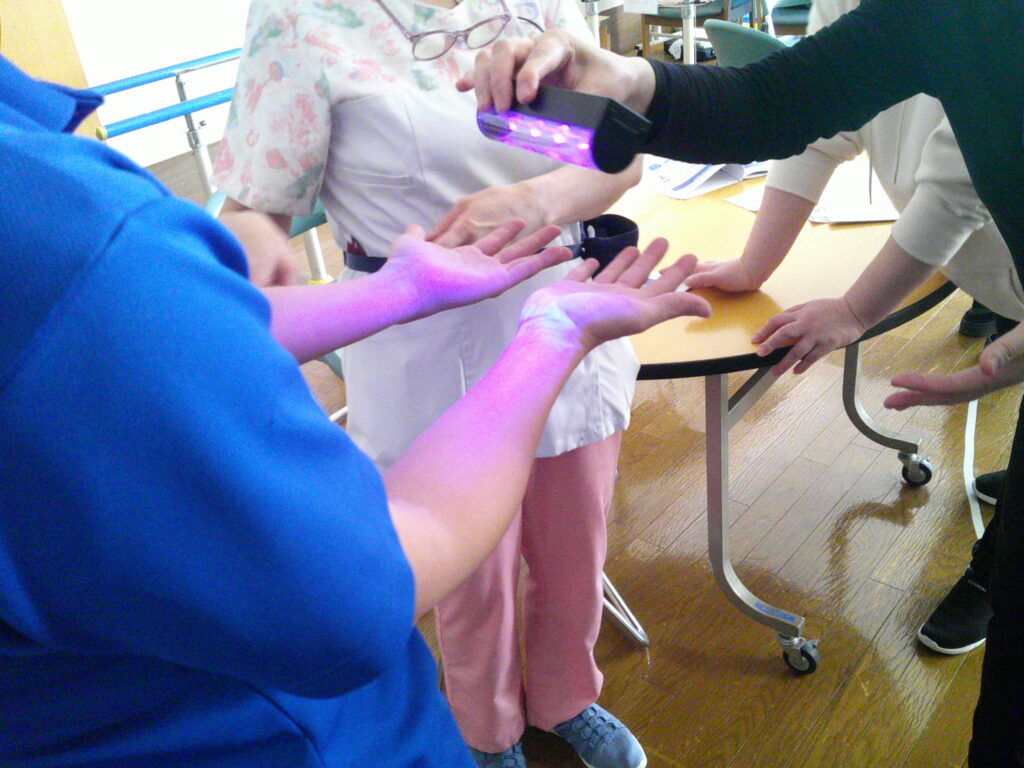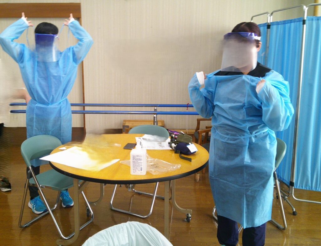 手洗いの方法やガウンの着脱方法、またクラスター発生時にはどのような方法で感染を広めないか等、また最新情報を教えて頂きました。