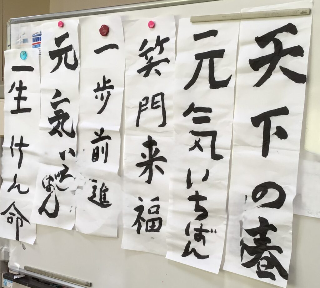 毎年恒例の新春書初め大会です。皆様、新年の思いや願い等、上手く書けたのかな?