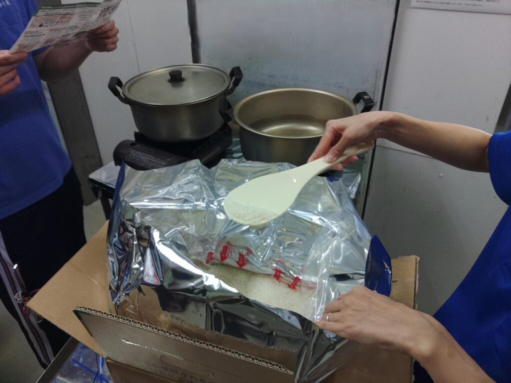 実際にアルファ米を使用しご飯を作成、缶詰を開けたり、盛付したりして災害時に備えた訓練でした。