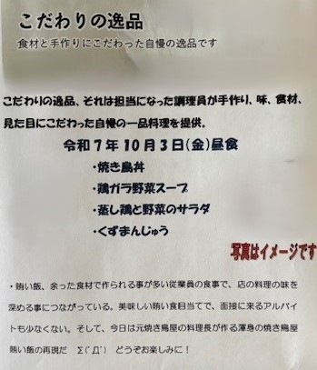 本日は元焼鳥屋に勤務された職員による焼鳥屋の賄いを提供しました。